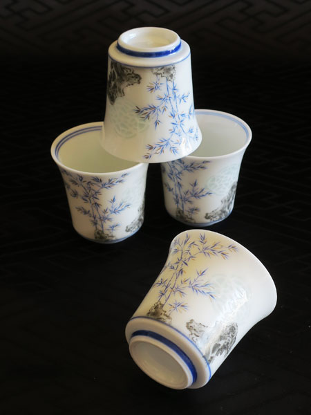 若竹と太湖石A「三才蓋碗」【ご予約再入荷待ち】